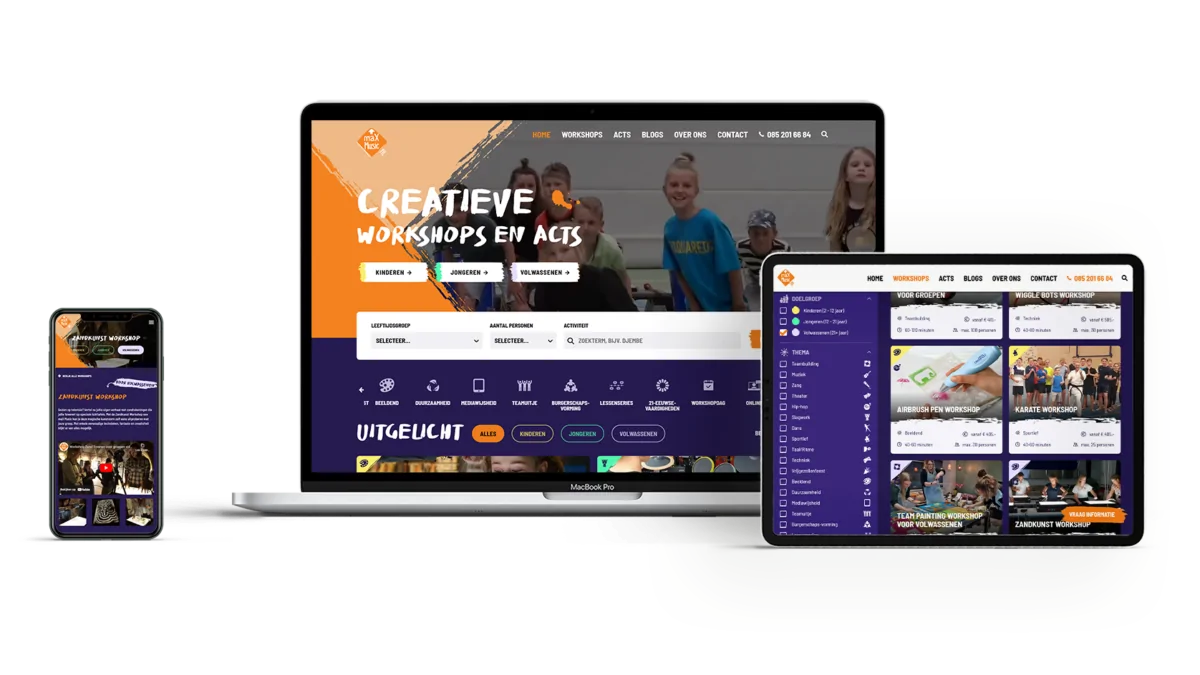 - TaakDeze klant met creatieve workshops wilde graag een creatieve website die echt bij hen zou passen. Ivo de Vink is met het design aan de slag gegaan en uiteindelijk hebben we een unieke website kunnen neerzetten met de focus op het snel vinden van de ideale workshop of act.